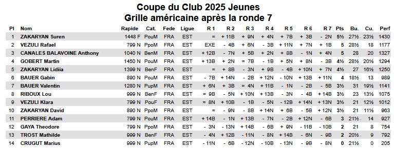 Dans le tournoi jeunes, victoire finale de Suren Zakaryan (5,5 pts sur 7), un demi-point devant Rafael Vezuli (2è) et Anthony Canales Balavoine (3è).